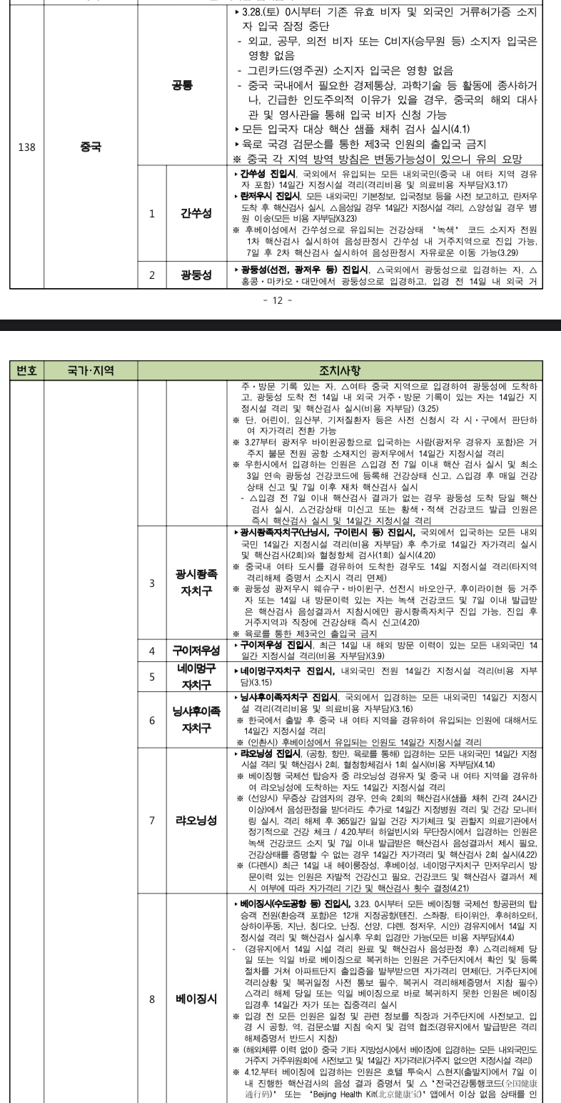 중국은 각성별로 기준이 틀리니 자세히 참조할 필요가 있습니다. 공통 사항은 기존비자 소유자 입국 잠정중단, 중국에 필요한 경제, 과학 기술 종사자는 별도 비자 신청 가능함.