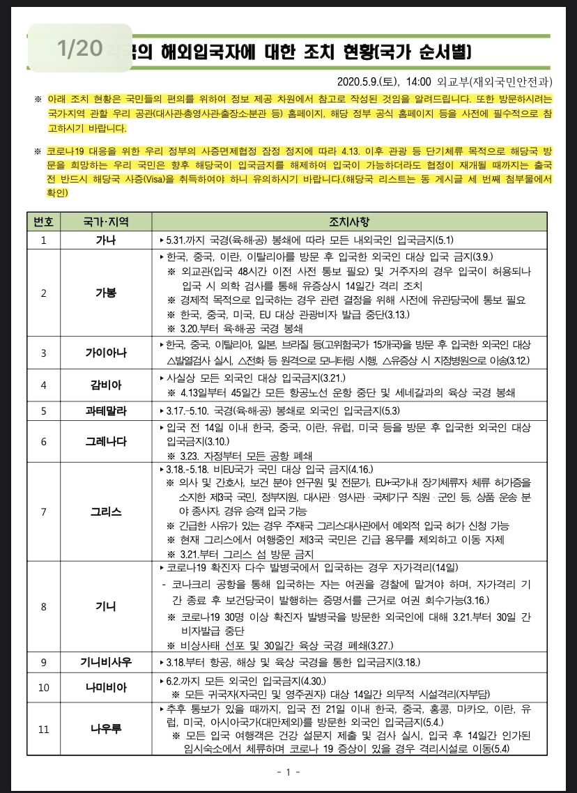 *2020년 5월9일 14:00 외교부(재외국민안전과)