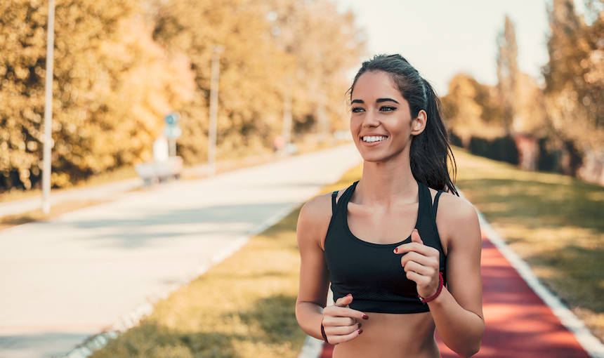심박수가 올라가면 걷는 것으로 전환하여 웃는 얼굴로 걸을 수 있는 상태를 유지해 주십시오.