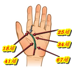 그리고 생명선의 형태에 따라서 「몇 살에 어떤 일이 일어날까?」라든가