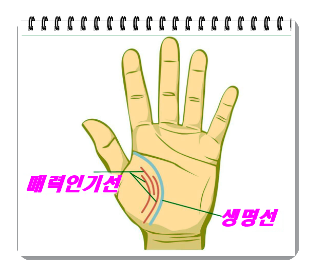 생명선이 금성궁을 에워싸 엄지 아래까지 획을 끌어들이는 손금