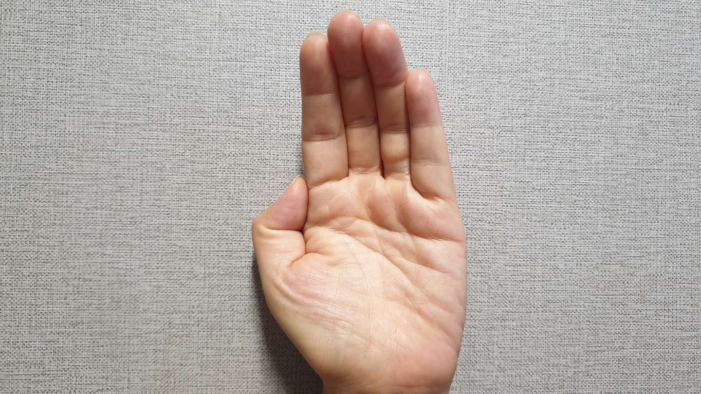 엄지손가락만 떼고 다른 손가락은 가지런히 내는 사람