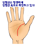 1. 생명선과 평행하게 생명선 쪽으로 하강하고 있다