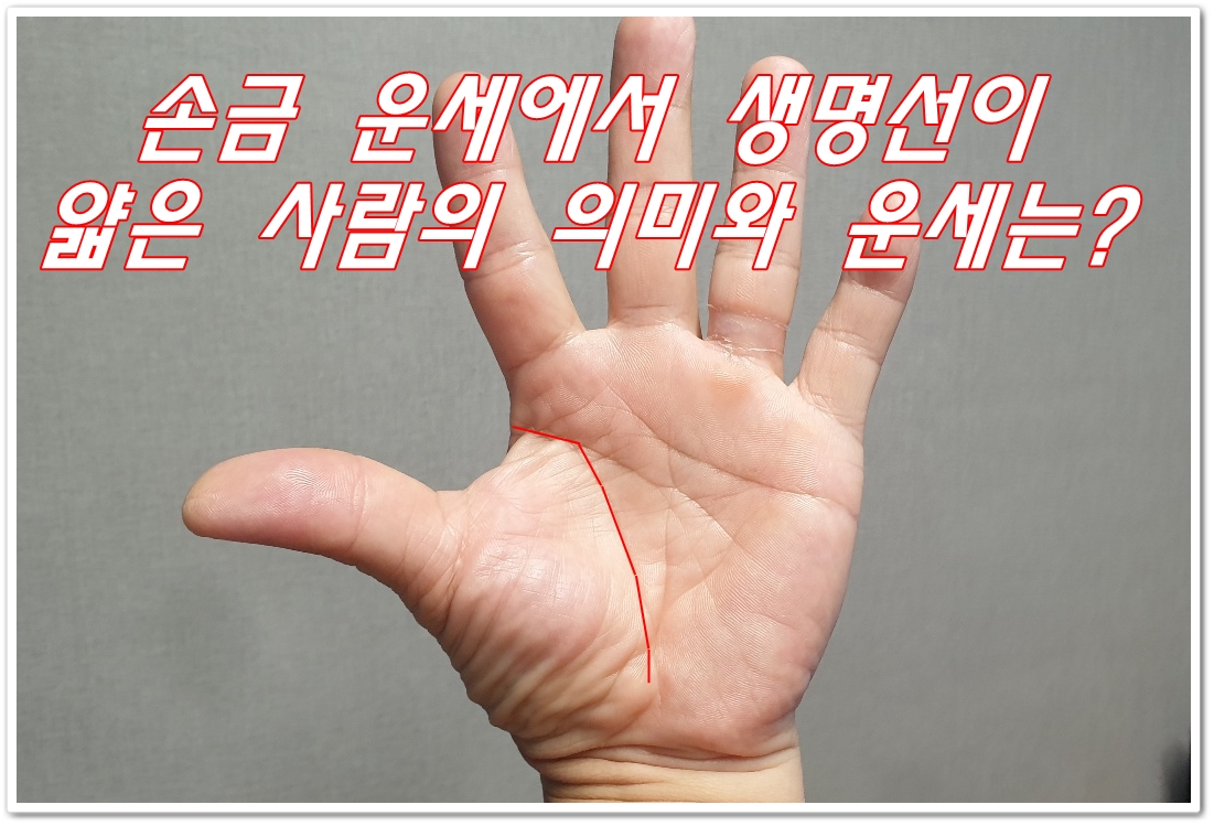 손금 운세에서 생명선이 얇은 사람은 어떤 의미가 있을까요? 생명선이 얇고 짧음, 잘림, 갈라짐, 왼손 오른손의 생명선이 얇은 경우 등 상황별로 자세히 설명하겠습니다.