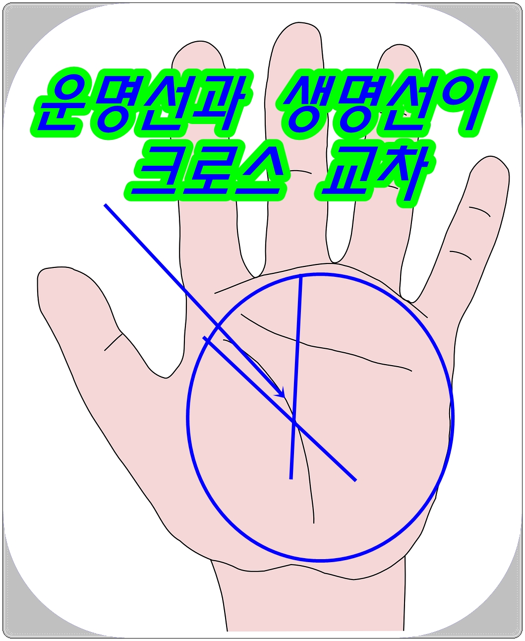 운명선과 생명선이 교차하여 십자선을 만드는 일은 거의 없기 때문에 단순히 교차하는 것을 말합니다.