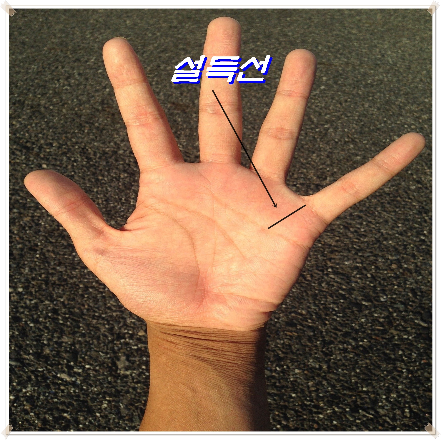 이 재운선이라고 잘못 보기 쉬운 설득선은 감정선 상에서 비스듬히 뻗는 것입니다.
