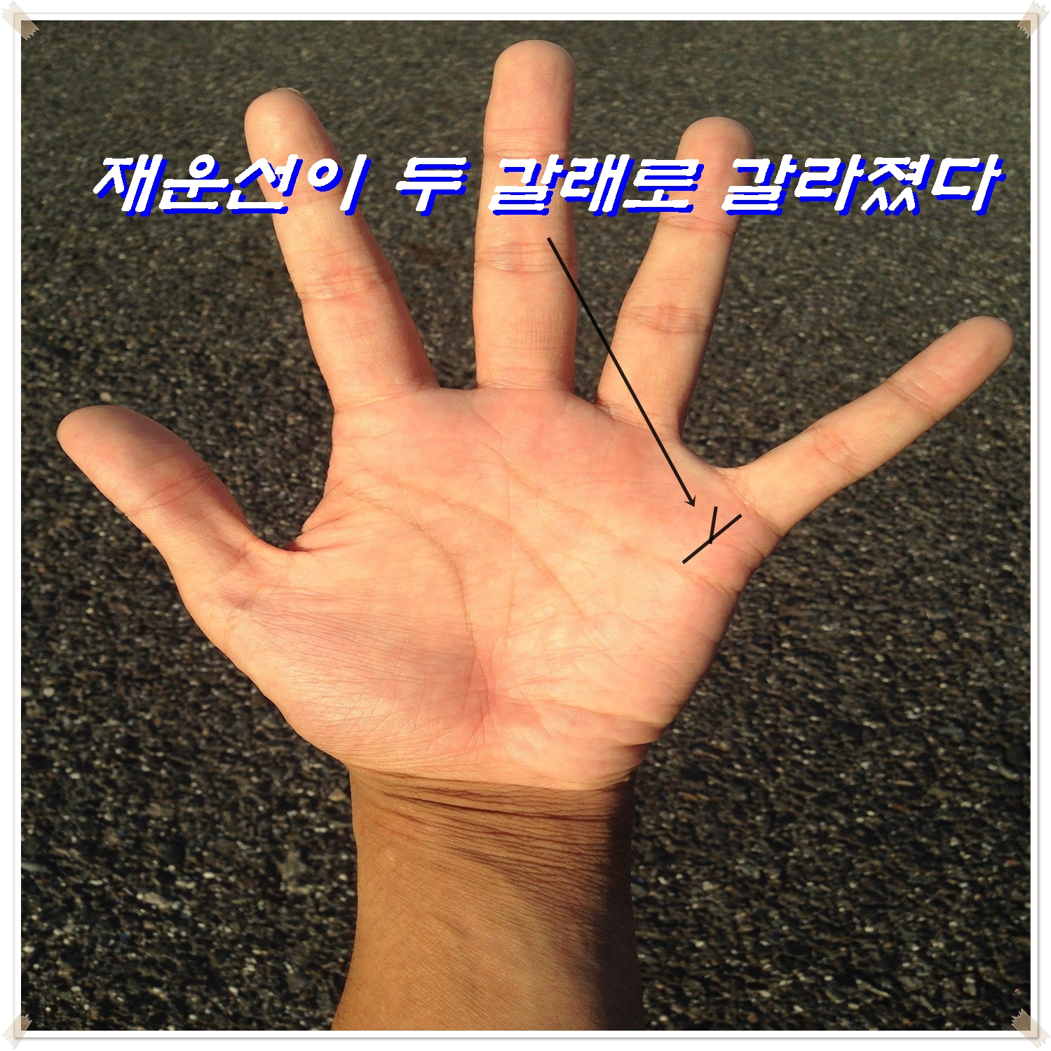 재운선 상부가 두 갈래로 갈라져 있으면 지금까지의 노력이 보상되어 큰 재화를 쌓을 수 있다고 합니다.