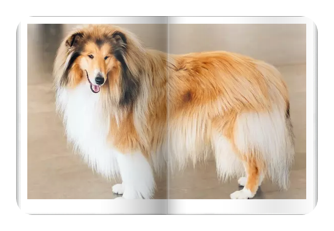 긴 머즐과 폭신폭신한 롱 코트가 특징인 목양견. 품위 좋은 색감의 차계열 바디와 목 주변의 새하얀 피모가 이 견종의 외형을 더 화려하게 만들고 있습니다.