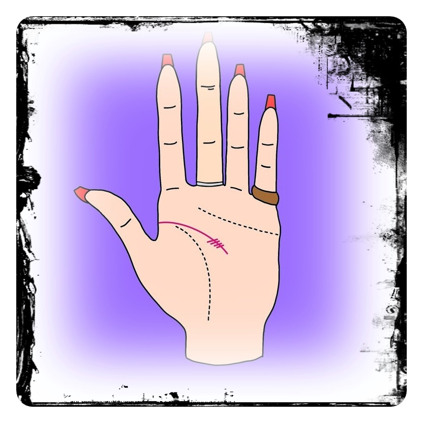 지능선에 여러 가닥 가로지르는 선이 있는 경우는 정신적인 갈등이 많고,