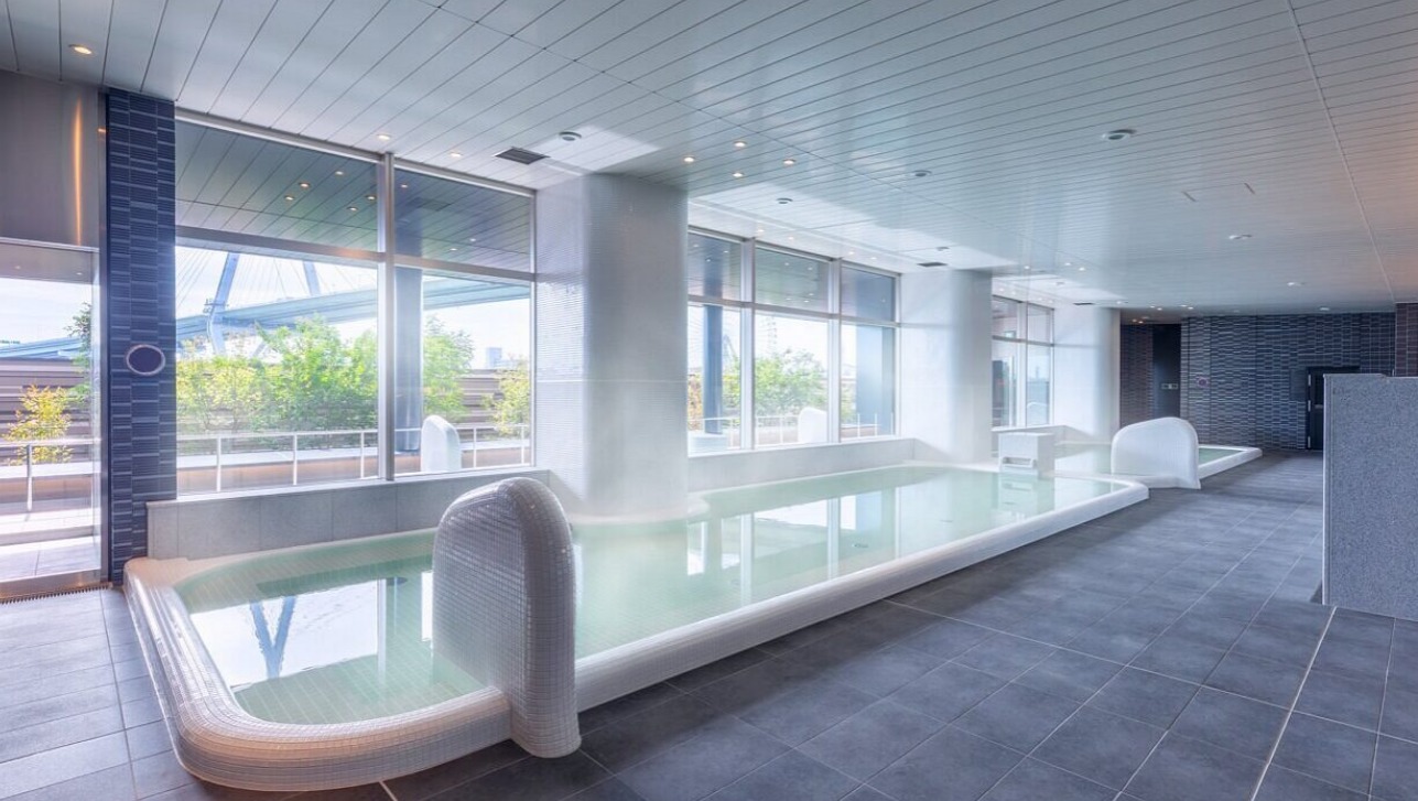 시설 내에는 베이 지역의 야경을 한눈에 볼 수 있는 테라스, 지하 1000m부터 퍼올린 천연온천 노천탕, 탄산탕, 사우나 등의 스파가 완비되어 있어 USJ로 돌아오는 길에 지친 몸에 최고입니다!