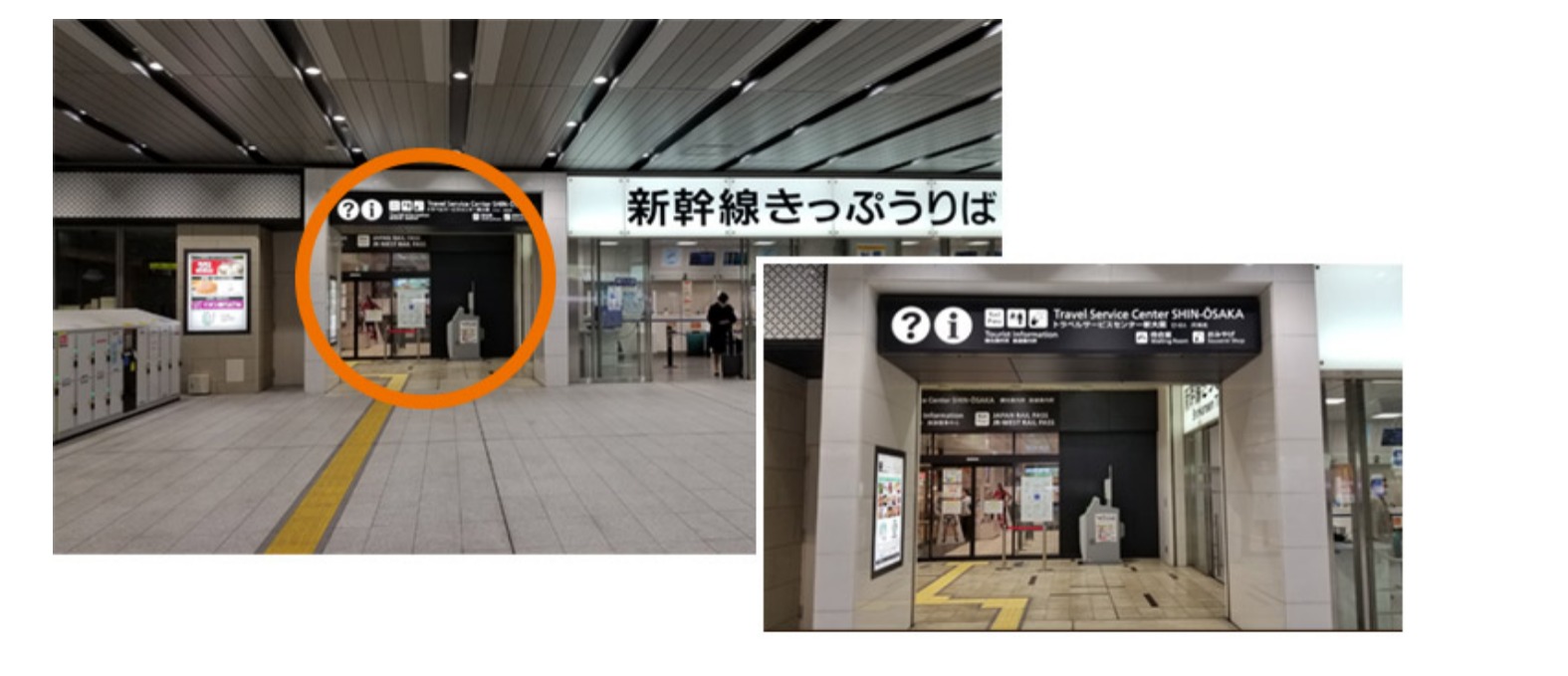 앞의 신칸센 티켓 우리바를 보면 왼쪽에 여행 서비스 센터 신오사카 관광 안내소가 있습니다.