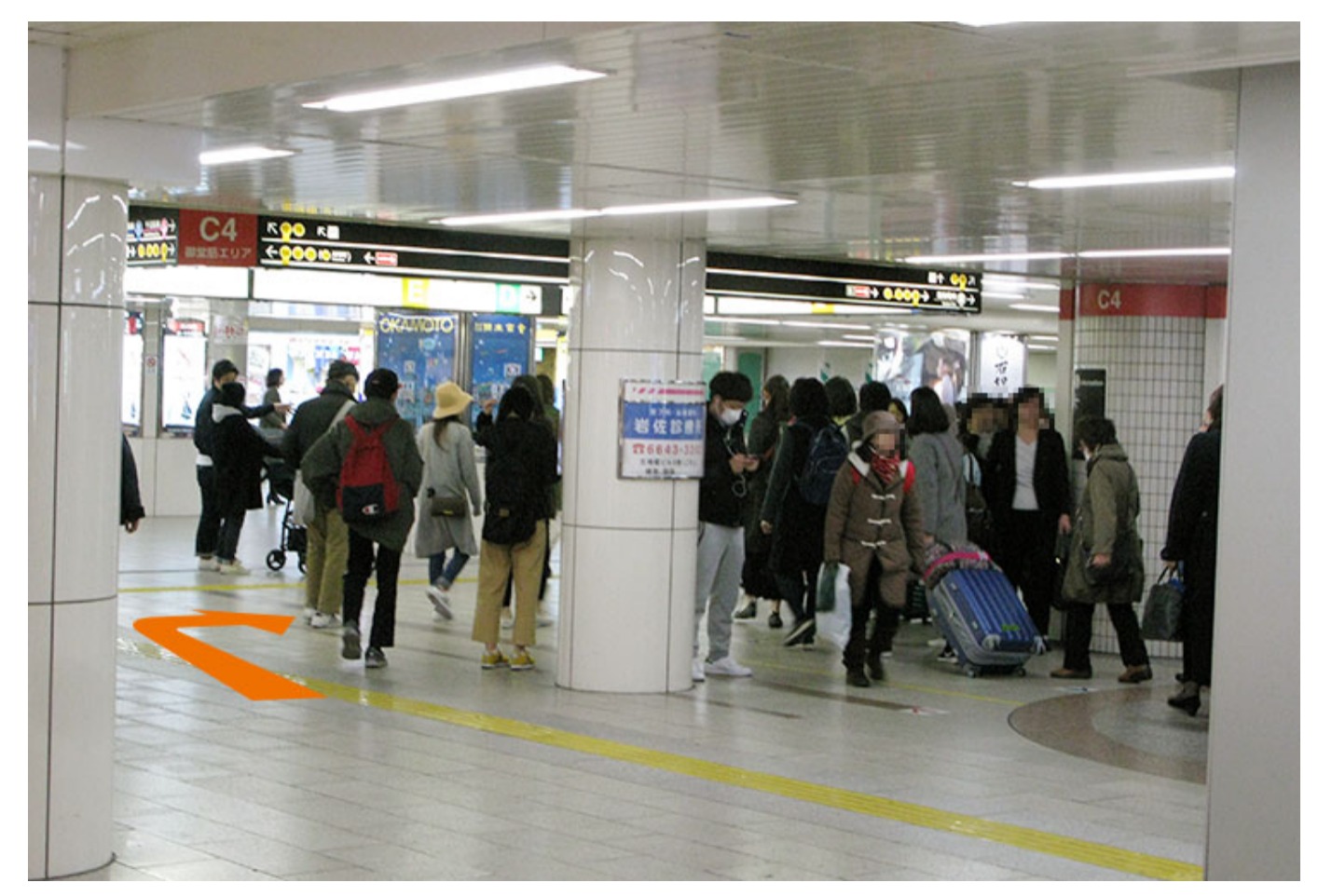 미도스지선의 북동쪽 개찰구가 보이면 우회전하세요. * C4 가이드 찾기