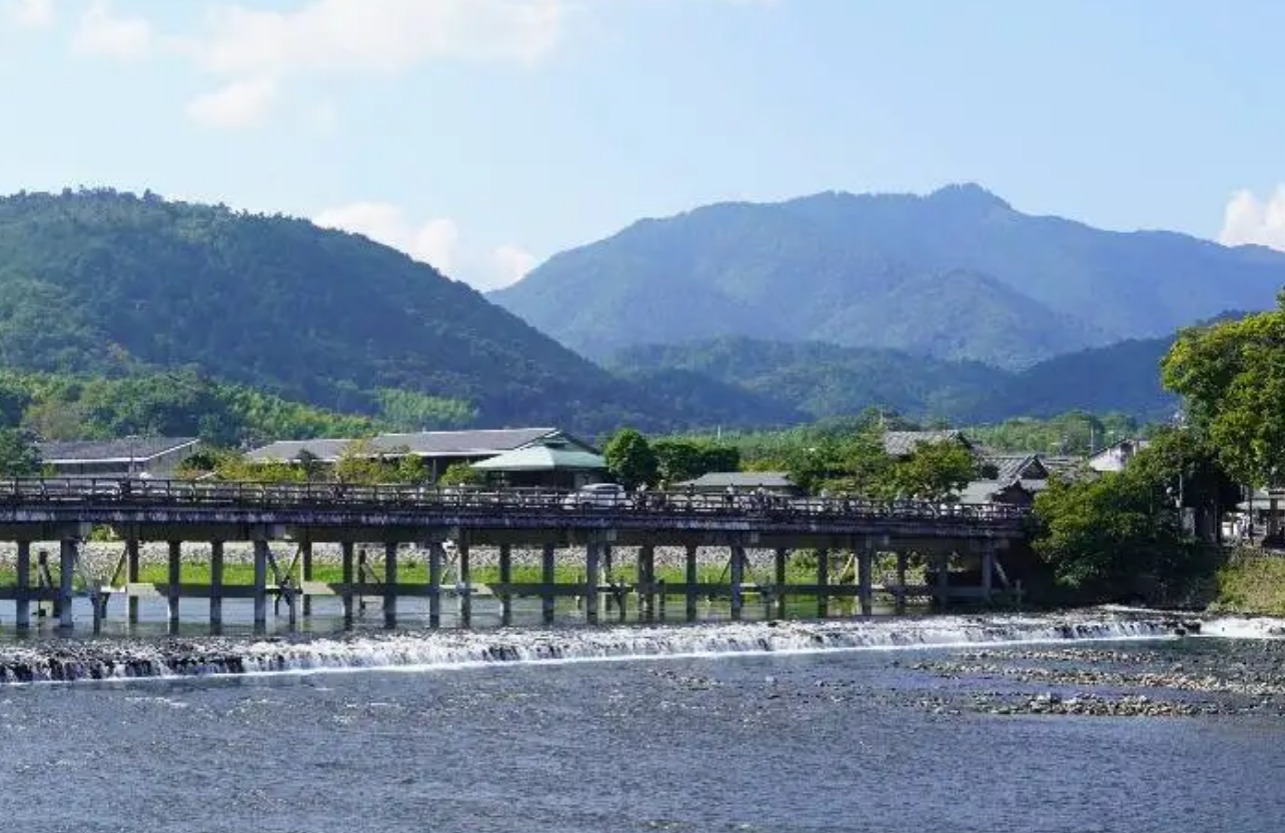 다리 하류에서 카메라를 산 쪽에 대고 일본의 아름다운 풍경을 촬영할 수 있습니다. 도게츠바시 북쪽에서 아라시야마역으로 가는 길에는 기념품 가게와 레스토랑이 늘어서 있고, 교토의 유명한 절임과 말차로 만든 과자 등 당장 먹고 싶은 음식이 있습니다. 그 너머에는 세계문화유산인 덴류지가 있어 아름다운 일본 정원을 볼 수 있습니다. 대여 자전거를 이용하면 대나무 숲길과 사가노 지역까지 편안하게 이동하고 걸어 갈 수 있으므로 사전에 관광 루트를 조사하는 것이 좋습니다.