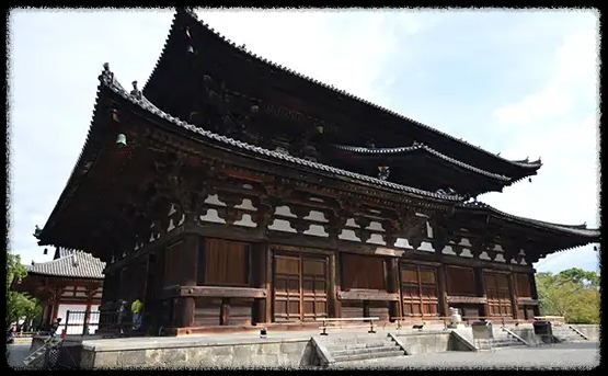 다음은 국보로 지정된 골든 홀입니다. 이곳은 도지 본당이며, 엔레키 15 년 (796 년)에 지어 졌다고합니다. 강당과 마찬가지로 문명 18 (1486)에 소실되어 게이 초 8 (1603)에 재건되었습니다.
