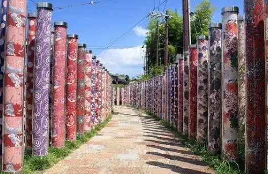 쿄 유젠을 사용한 약 2m 높이의 약 600 개의 장대가 숲처럼 늘어서 있습니다.