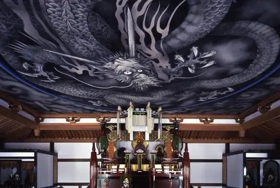 ▲ 홀 천장에 그려진 구름 용 다이어그램.