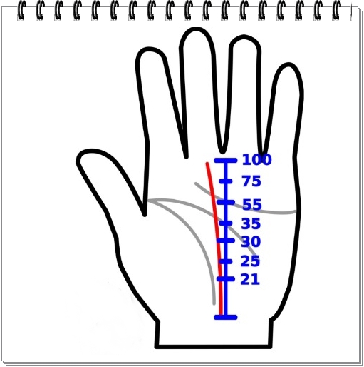 손바닥 중앙에서 수직으로 뻗어 가운데 손가락쪽으로 뻗어있는 선을 "운명 선"이라고합니다.