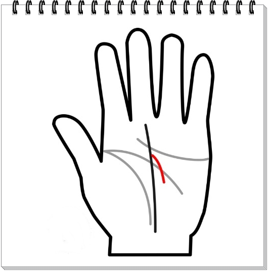 운명의 선에서 위쪽으로 뻗어있는 지선은 행운의 방향으로 큰 회전을 나타내는 것으로 간주됩니다.