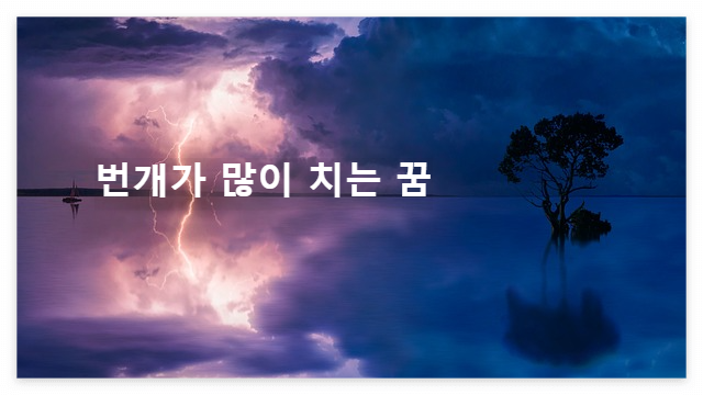 번개가 치는 꿈은 축적된 스트레스의 폭발이나 큰 변화의 의미를 가지고 있는 것 같습니다.