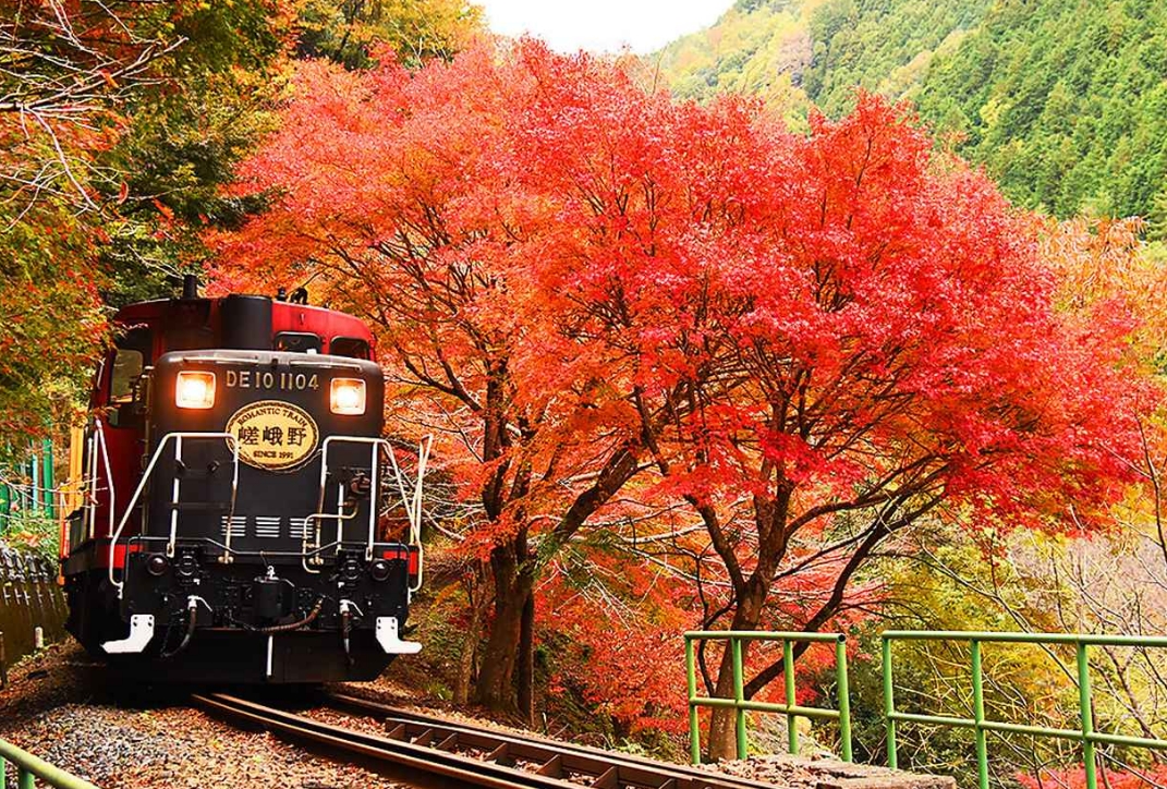 교토의 단풍은 신사와 사원에만 국한되지 않습니다. 아라시야마에 가고 싶다면 관광 열차를 타고 단풍의 바다를 여행하는 것도 즐길 수 있는 방법 중 하나입니다.