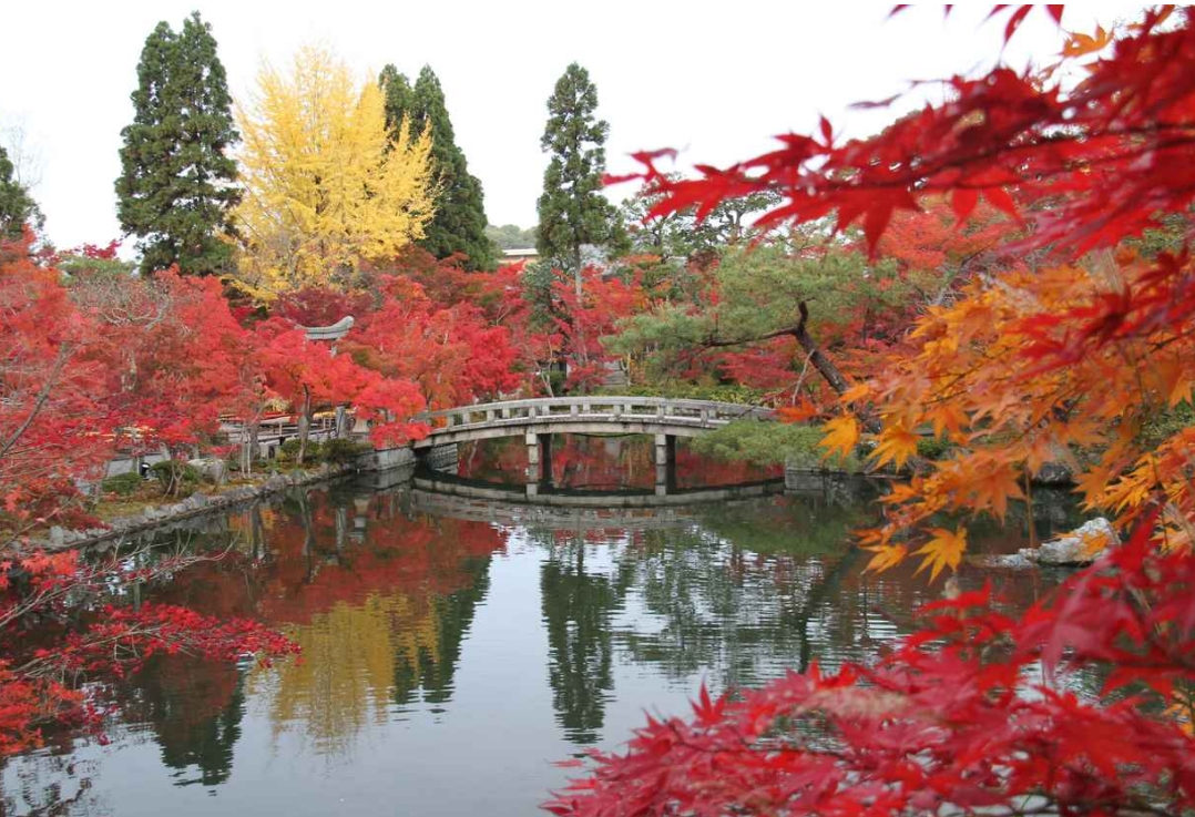 철학자의 길 근처에 위치한 에이칸도는 교토에서 가장 유명한 단풍 명소 중 하나로, 헤이안 시대부터 "모미지노 에이칸도"로 칭송받고 있습니다. 산기슭에 우뚝 솟은 타호 파고다(Taho Pagoda)와 함께 하는 가을 풍경은 시대를 불문하고 사람들을 매료시켰습니다. 고콘슈에서도 불렸던 '이와가키 모미지'는 지금도 사찰 경내의 동쪽에서 볼 수 있다고 합니다.