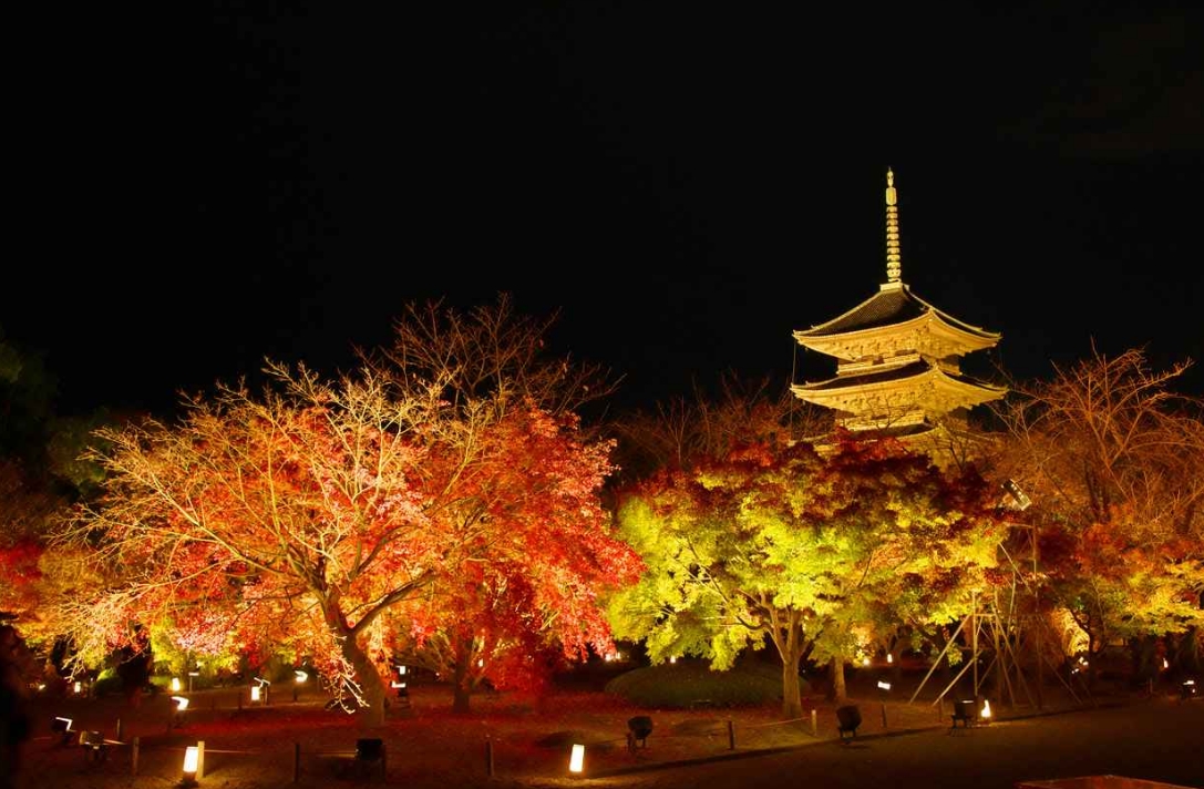 도지 사원에서는 국보 5층 탑과 단풍 대회를 볼 수 있습니다