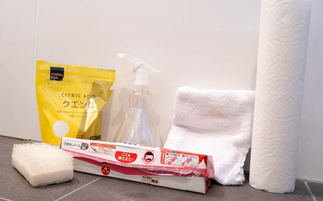 또한 키친 페이퍼를 붙이고 위에서 구연산 스프레이를 충분히 뿌립니다