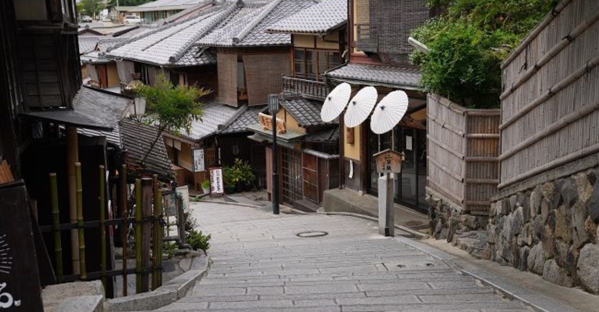 천 개의 격자와 기와 지붕이있는 교토의 마치 야 문화. 이제 그 풍경은 줄어들고 있습니다.