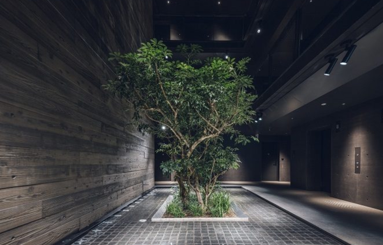 주택에 빛과 바람이 들어오는 것 외에도 도시 지역의 주택이 사계절 내내 자연을 즐길 수 있도록 안뜰을 만드는 경우가 많았습니다. 이러한 디자인을 포함한 호텔의 전체 디자인(객실 제외)은 마치야 건축에 대한 깊은 지식을 가진 교토 대학에서 가르치는 시게레이 우오타니 씨가 디자인했습니다."