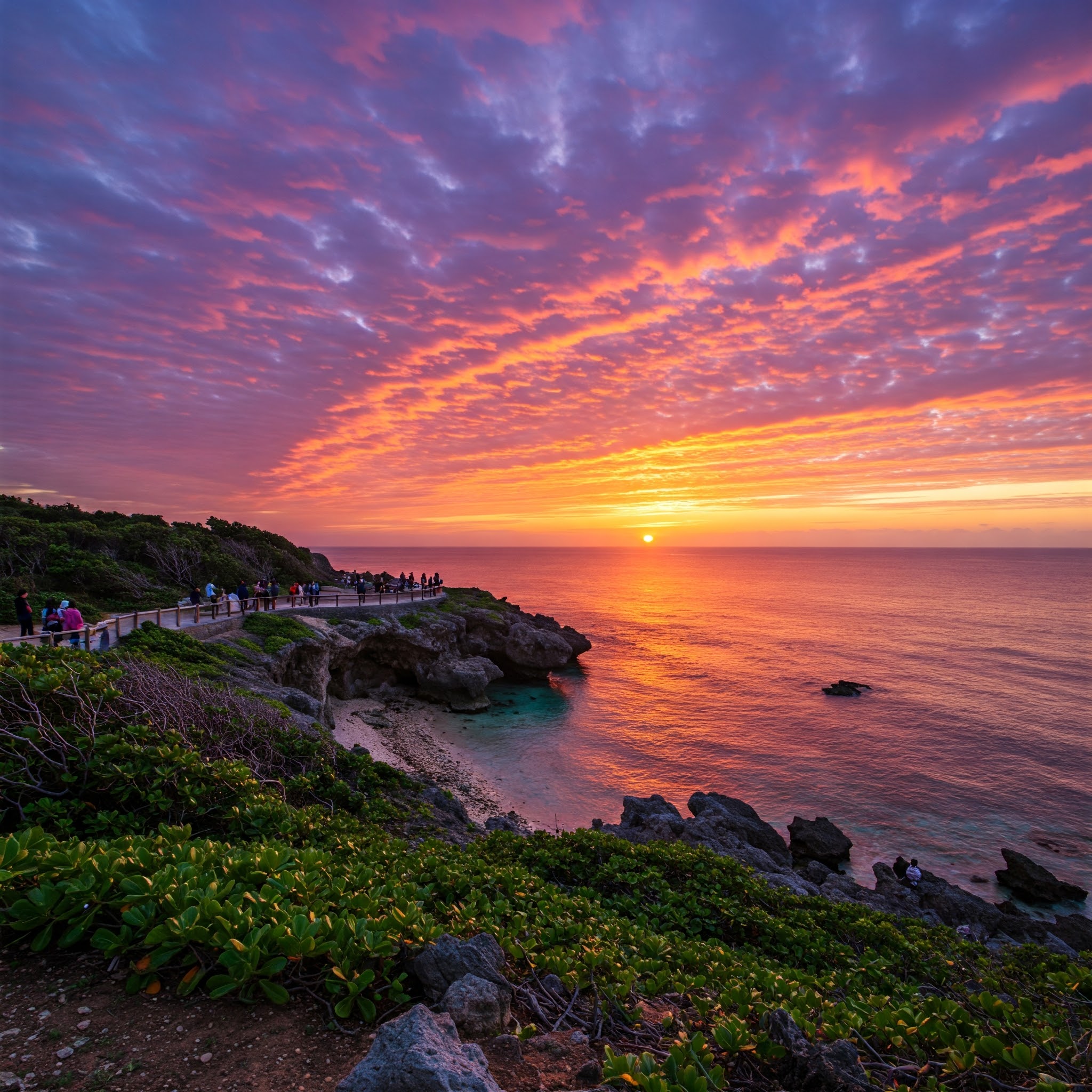 * 오키나와 치넨미사키 공원 (知念岬公園): 오키나와 본섬 최동단에 위치한 치넨미사키 공원은 탁 트인 태평양 위로 떠오르는 일출을 감상하기에 좋은 곳입니다. 푸른 잔디밭과 바다가 어우러진 풍경 속에서 맞이하는 일출은 특별한 경험을 선사합니다.