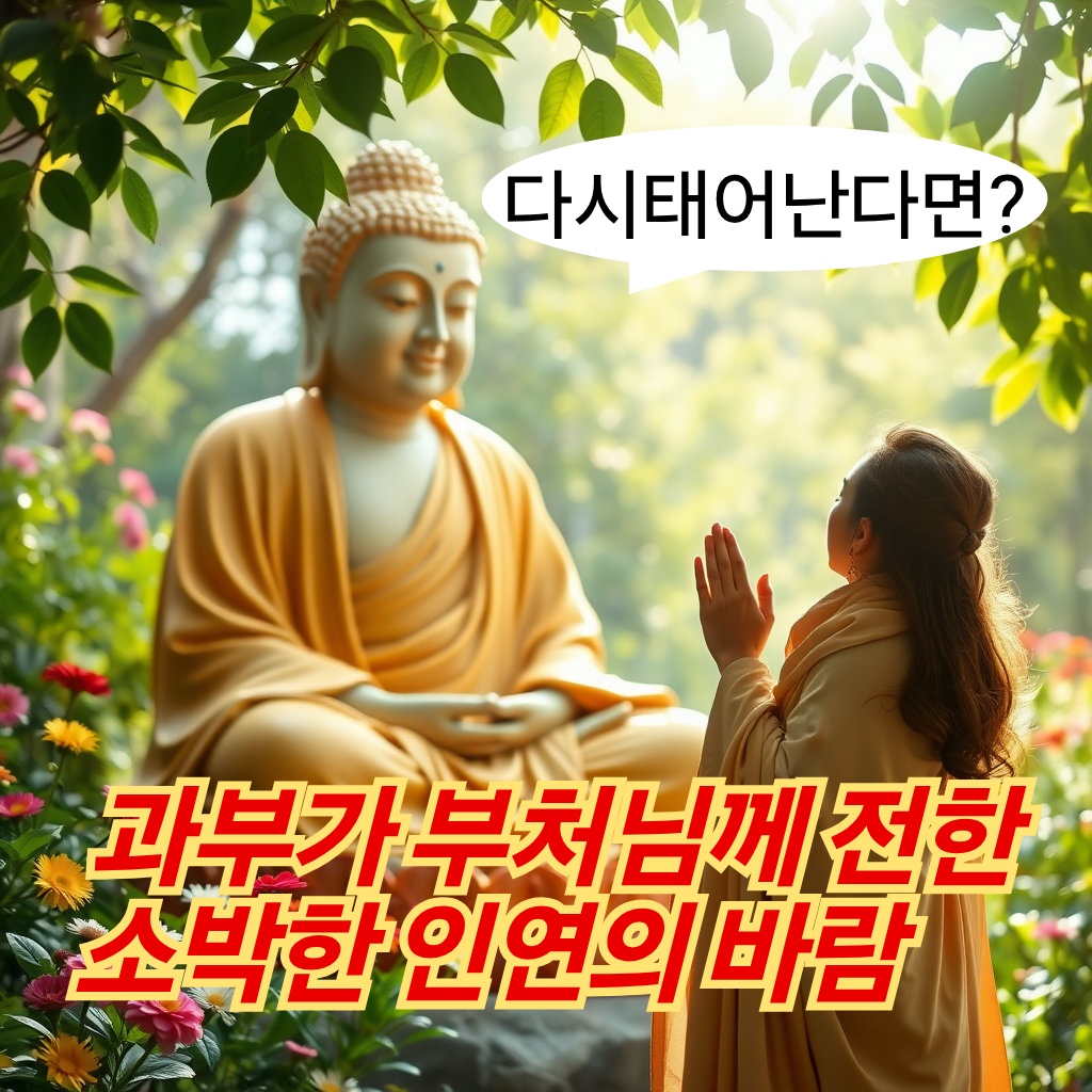 여인은 한참 동안 말이 없었다. 마른 입술을 몇 번이나 달싹거리던 그녀는 마침내 힘겹게 입을 떼었다. “부처님… 제가 다시 태어날 수 있다면….” 그녀의 목소리는 메마른 갈대처럼 떨렸다. “저는… 저를 진정으로 이해해 주고 아껴주는, 평범하지만 마음이 따뜻한 남자를 만나고 싶습니다.”